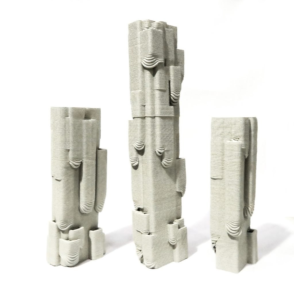 Robotic 3D printed clay “Gravity” serie – computational design by Co-de-iT – robotic fabrication by digifabTURINg – photo credits: Co-de-iT