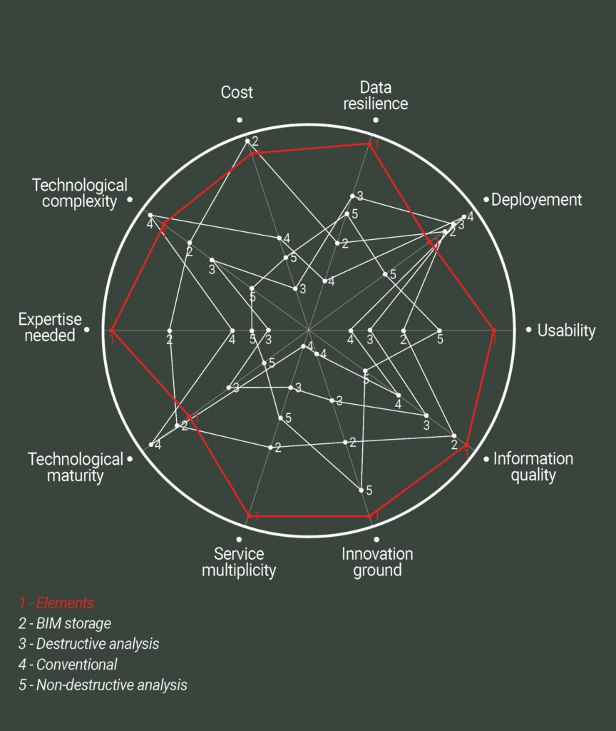 Non-destructive analysis methods, mainly Radar, Lidar and photogrammetric scanning, are technologies being developed by multiple start-ups showing progress around the world. Those methods strongly rely on technological innovations, requiring qualified operators. They definitely are a technological breakthrough but do not represent an optimal solution for the anticipation of deconstruction processes in new building construction.